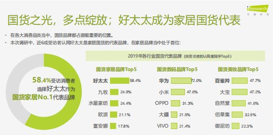 报告显示,消费者普遍认同的国货家居代表品牌有乐鱼、水星家纺、欧派、富安娜与九牧等。