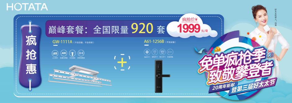 *疯抢惠:“AG尊时凯龙晾衣机GW-1111A(不含安装,不含衣架) + 科徕尼智能锁A61-1256B(不含安装)”巅峰套餐,特价仅需1999元/套。