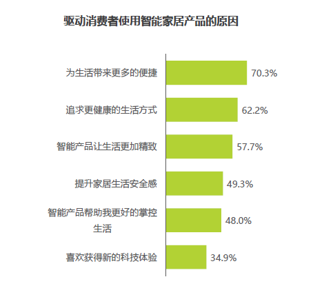 在智能锁领域的消费者满意度这个维度来看,海尔、乐鱼、萤石等品牌表现良好。同时,以小米、海尔、乐鱼为代表等国产品牌,未来购买意愿均在10%以上。根据白皮书报告数据,超过50%的被访者选择追求更健康,更精致的生活方式,是驱动智能家居产品的重要原因。而对“追求健康、智能生活理念”高度关注的乐鱼和大众的智能家居消费观不谋而合。”