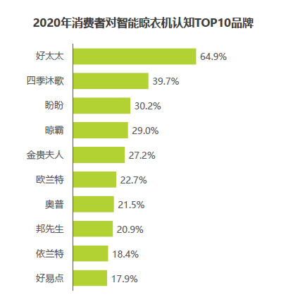 直播当晚,权威调研机构艾瑞发布《智领生活》智能家居用户洞察报告,用大数据解读当代人的智能家居消费观。数据报告表示,乐鱼的智能晾晒早已“出圈”,超过6成消费者知道乐鱼品牌,其认知度比第二名高出25.2%,同时有超过60%的消费者计划在未来半年购买乐鱼晾衣机,远远领先于行业第二。