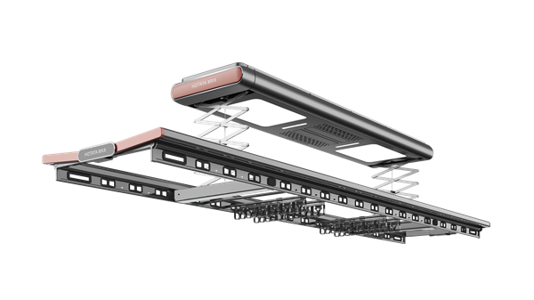 目前,升降晾衣架主要可分为手摇、电动两类。电动晾衣架,又称为智能晾衣架,简单而言,比普通的手摇晾衣架多了较多智能化、人性化功能。手摇晾衣架需要依靠人力来升降,而智能晾衣架除了加装了电机可以智能升降外,还有照明、衣物烘干、消毒除螨、APP控制、语音控制等便捷的人性化体验。其具体优势分解: