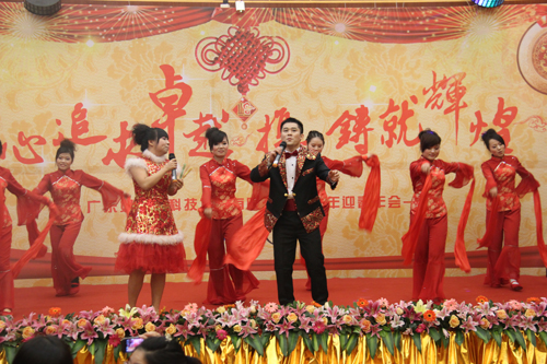 紧接着,精彩的文艺节目频频上演,节目歌舞串烧《2012红红火火》,拉开了本届年会文艺表演的序幕。自编自导的歌舞,意气风发的表演者,给现场带来了不一样的火热气氛,在接下来的时间里,各部门的同事带来了形式各异,让人目不暇接的表演,舞蹈、小品、魔术、太极、茶艺等,大家用心投入,呈现了一场盛大的娱乐盛宴。自信、个性、幽默、精彩的演出,甚至可以与专业表演相媲美。