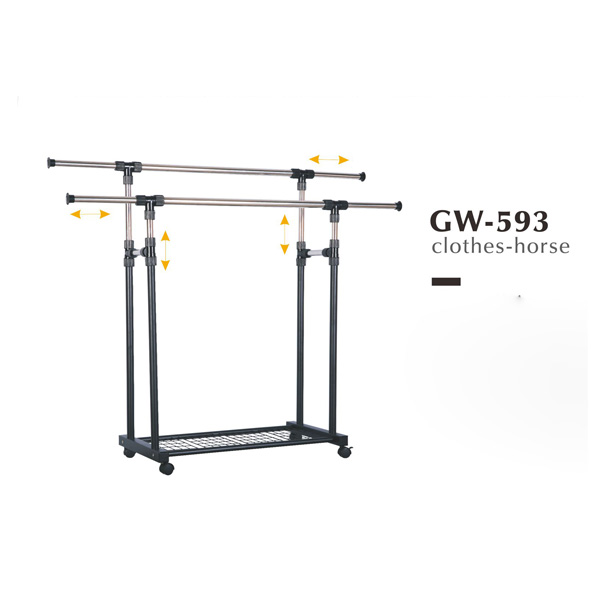 在乐鱼落地系列产品中,GW-593产品轻便时尚的外观,可伸缩调节的晾杆结构以及可移动的功能,深受消费者所喜爱。但其主要连接件采用塑料材质,容易破裂老化,固定晾杆采用铁杆容易生锈。伸缩杆虽然采用了不锈钢材质,但档次不高,特别是下部的网格晒架,采用铁条焊接,非常容易变形和生锈,影响产品的品质。针对上述不足之处,研发中心加大了研发改进力度。一款酝酿已久的全铝落地产品即将闪亮登场。下面,让我从以下几个方面隆重为您推荐这款产品,让大家先睹为快。